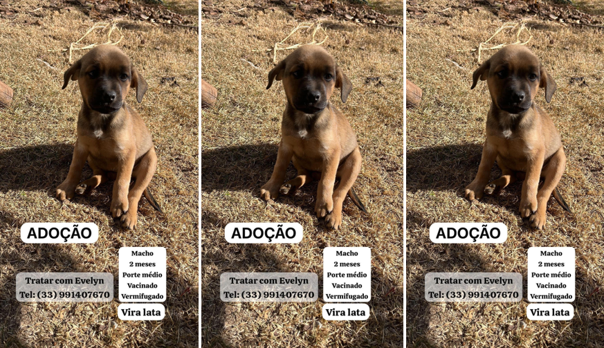 Estes filhotes vira-latas estão disponíveis para adoções responsáveis. Estão com 52 dias de vida, são 4 machos e 2 fêmeas e merecem adotantes que gostem e cuidem com amor e afeto. Poderão ser levados aos interessados.