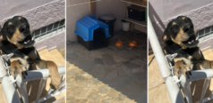 Há três semanas ele tem vivido ali, dependendo da ração e água que lhe são oferecidos. Ele dorme ao relento, em uma calçada. mar22-0041-mgLP
