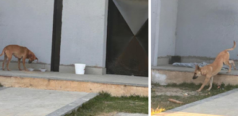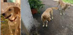 Há três semanas ele tem vivido ali, dependendo da ração e água que lhe são oferecidos. Ele dorme ao relento, em uma calçada. mar22-0041-mgLP
