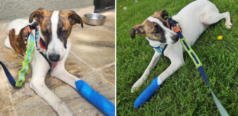 Este cachorro foi resgatado em março de 2023, quando ainda era um filhotinho e estava abandonado. Ele se chama Léo. abr25-0013-mgPR