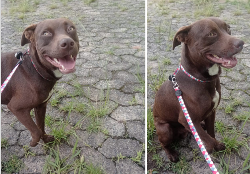 É um cachorro de porte médio, pesa 18 quilos, é dócil e tem entre 1 a 2 anos. Merece muito amor e afeto.