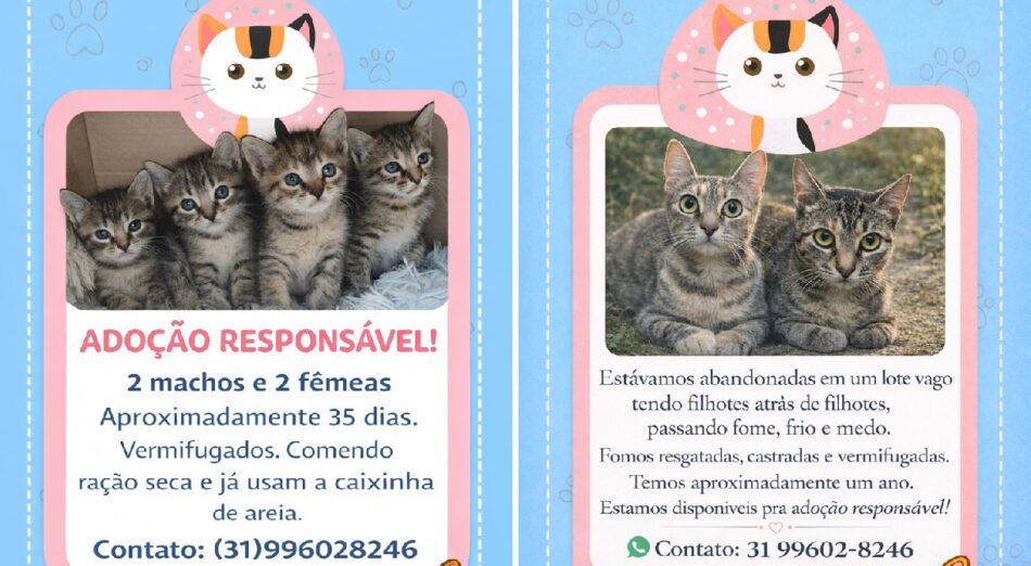 As duas mães já estão castradas e vermifugadas, têm em torno de um ano.