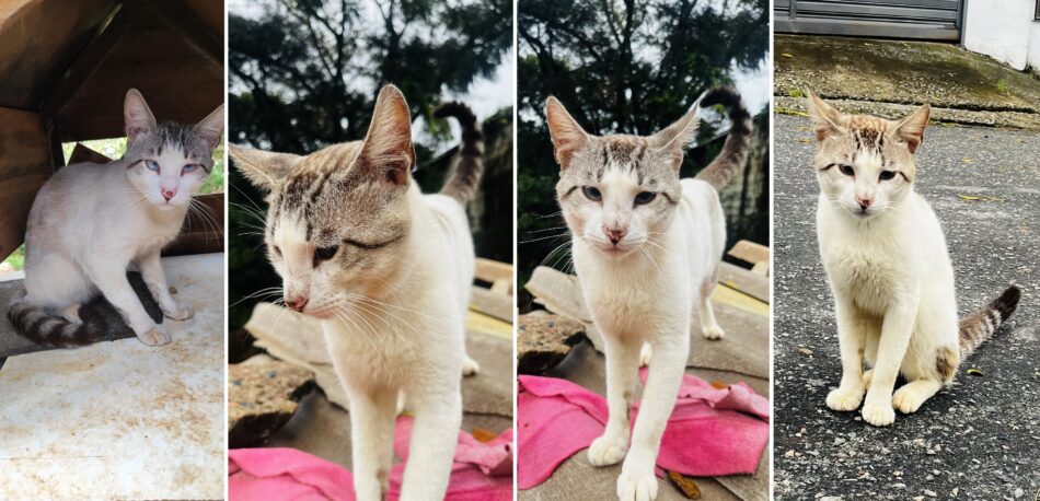 A Pitica, mais velha do bando, já é uma adulta, com cerca de 5 anos de idade. Sempre morou nas ruas e era super arisca, mas agora já se acostumou com o contato humano e até mostra a barriguinha pra pedir carinho. Está castrada.