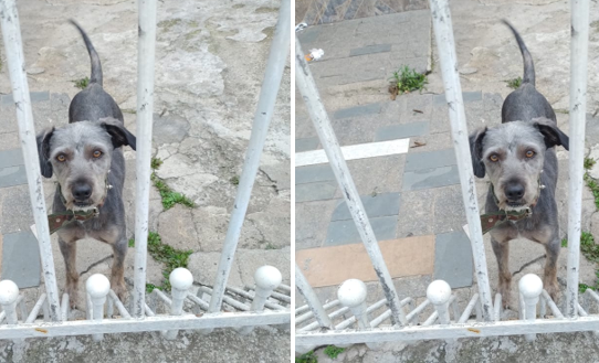 Estava sujo e dormia no relento, uma vizinha o levou para banho e tosa e conseguiu uma casinha para ele.